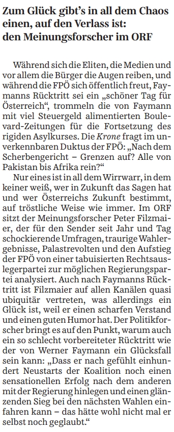 Die andere Seite des Peter Filzmaier (Salzburger Nachrichten, Dezember 2019)